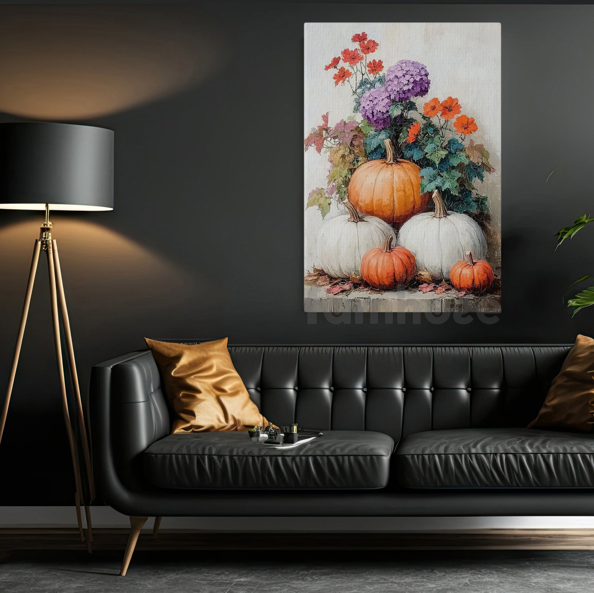 Thanksgiving Pumpkins Canvas Painting, Autumn Harmony Wall Art Decor, Thankful Poster Gift For Pumpkin Lovers