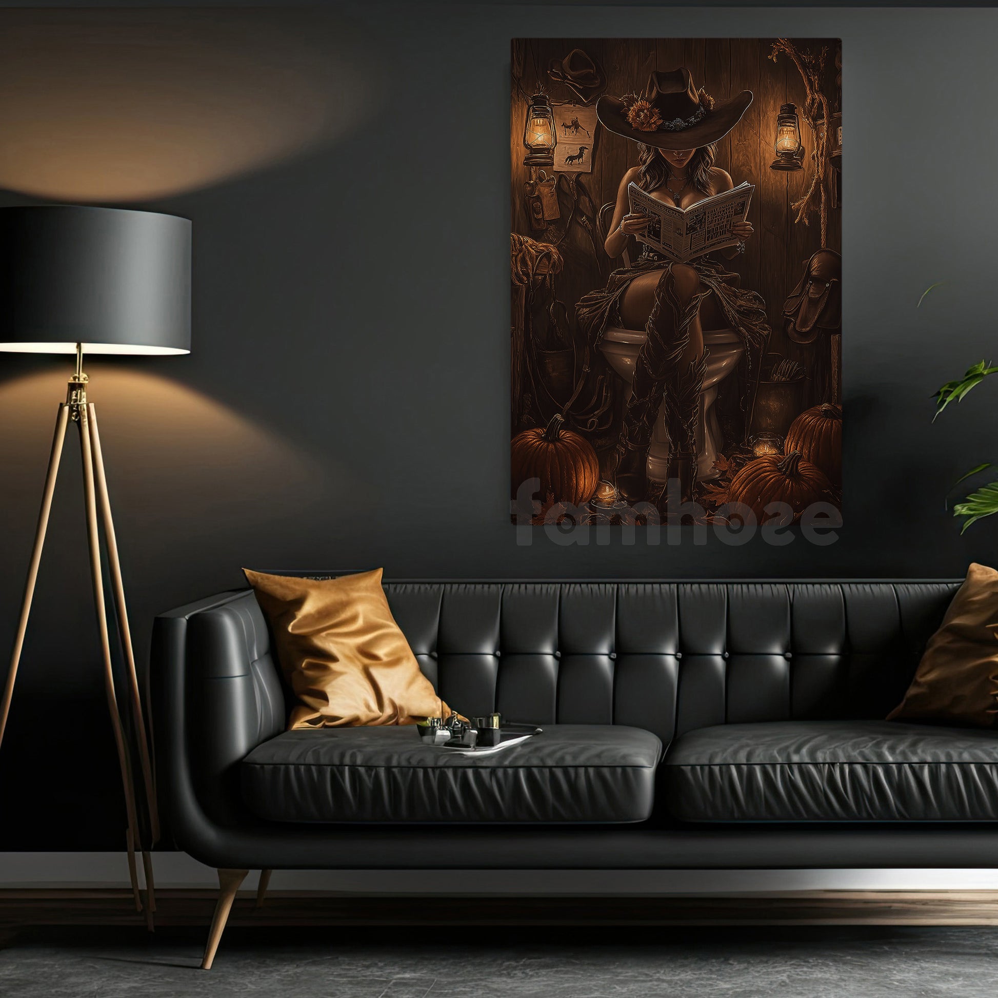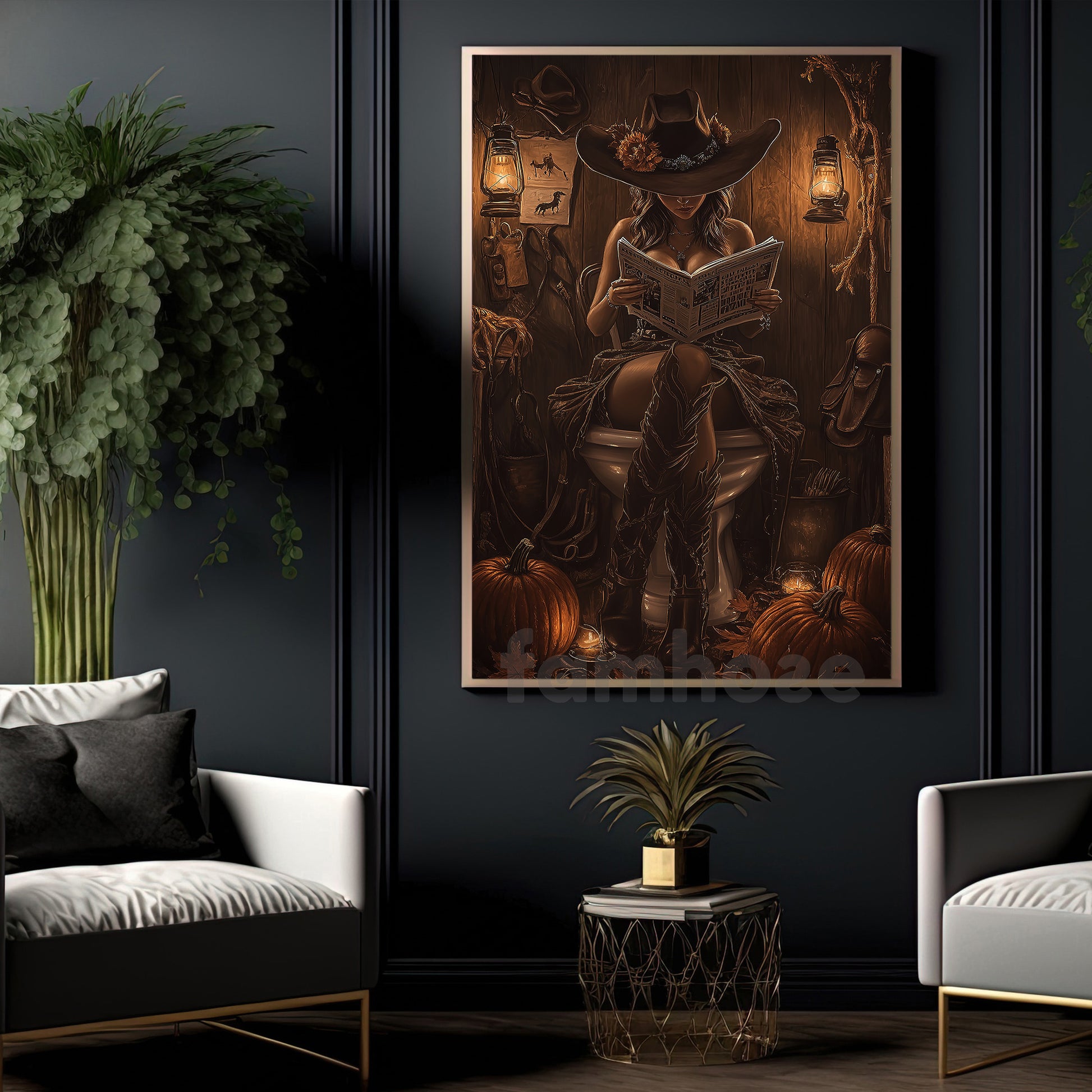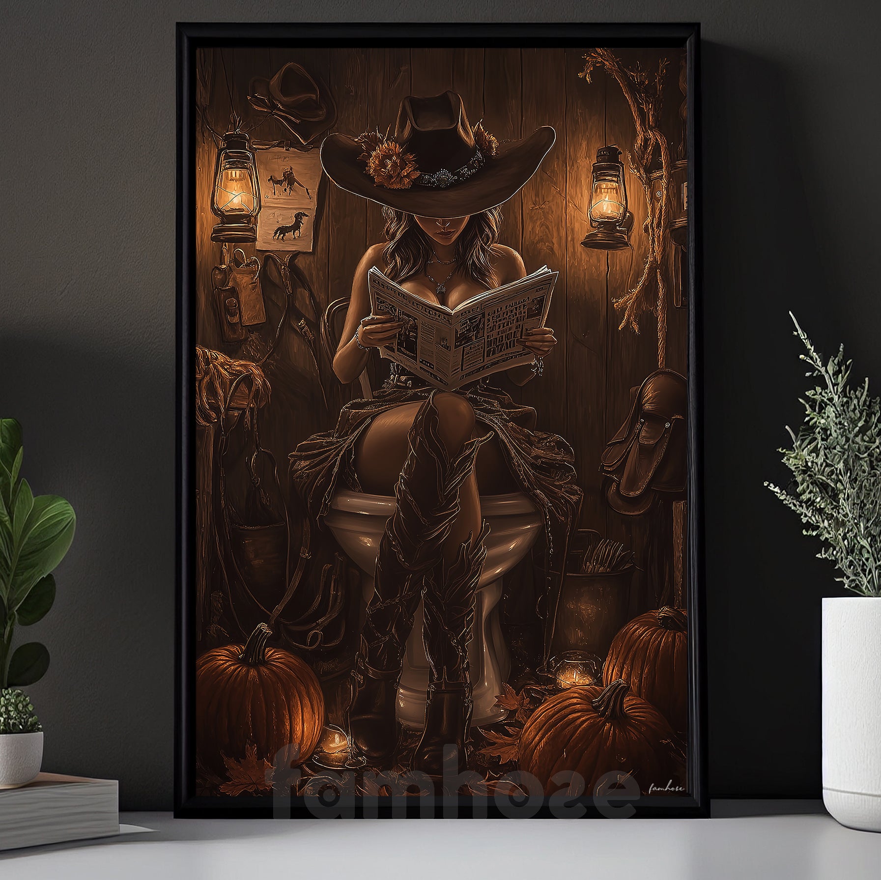 Thanksgiving Toilet Cowgirl Canvas Painting, Witchin’ Time Out Bathroom Wall Art Decor, Thankful Restroom Poster Gift For Cowgirls