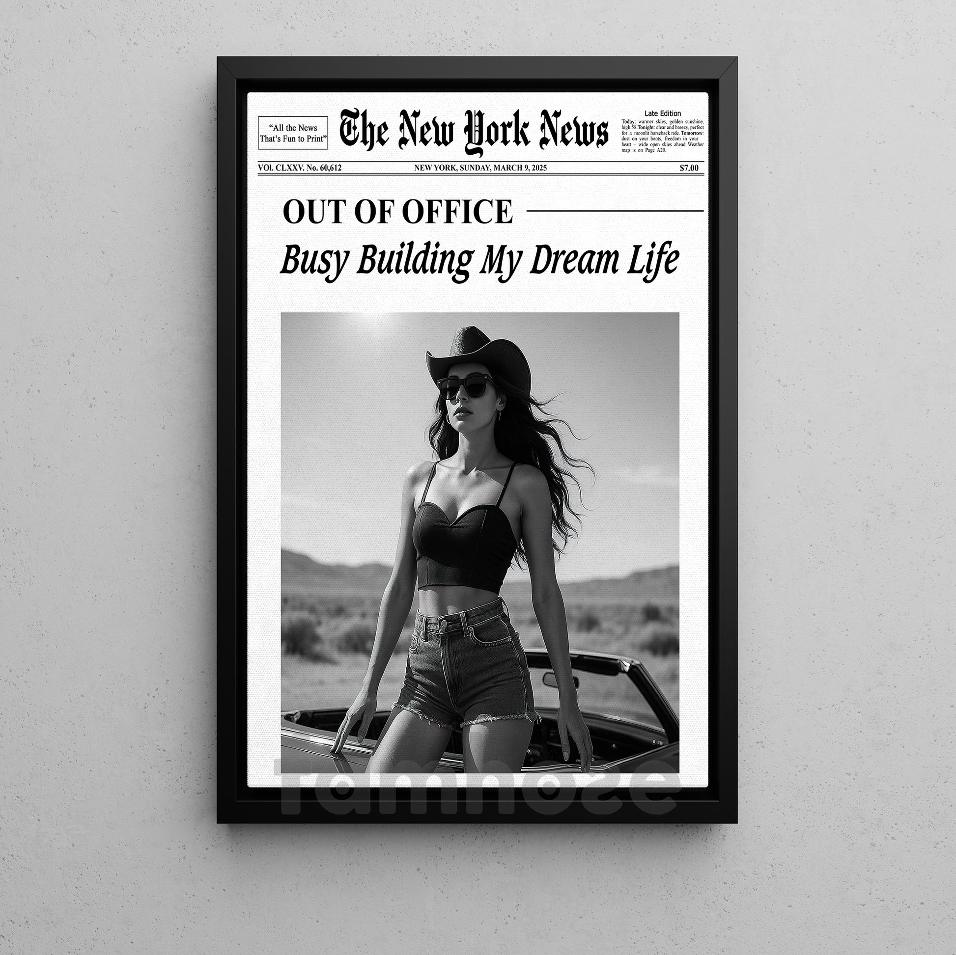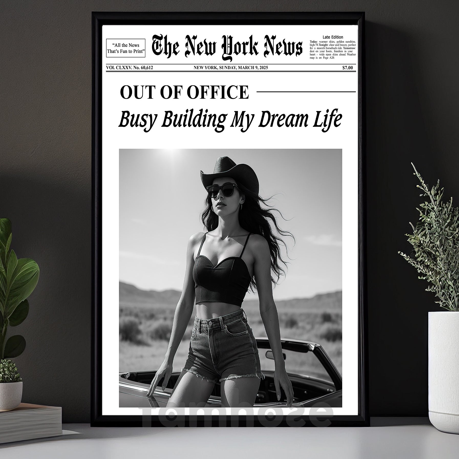The New York News Cowgirl Canvas Painting, Busy Building My Dream Life Wall Art Decor, Poster Gift For Cowgirl