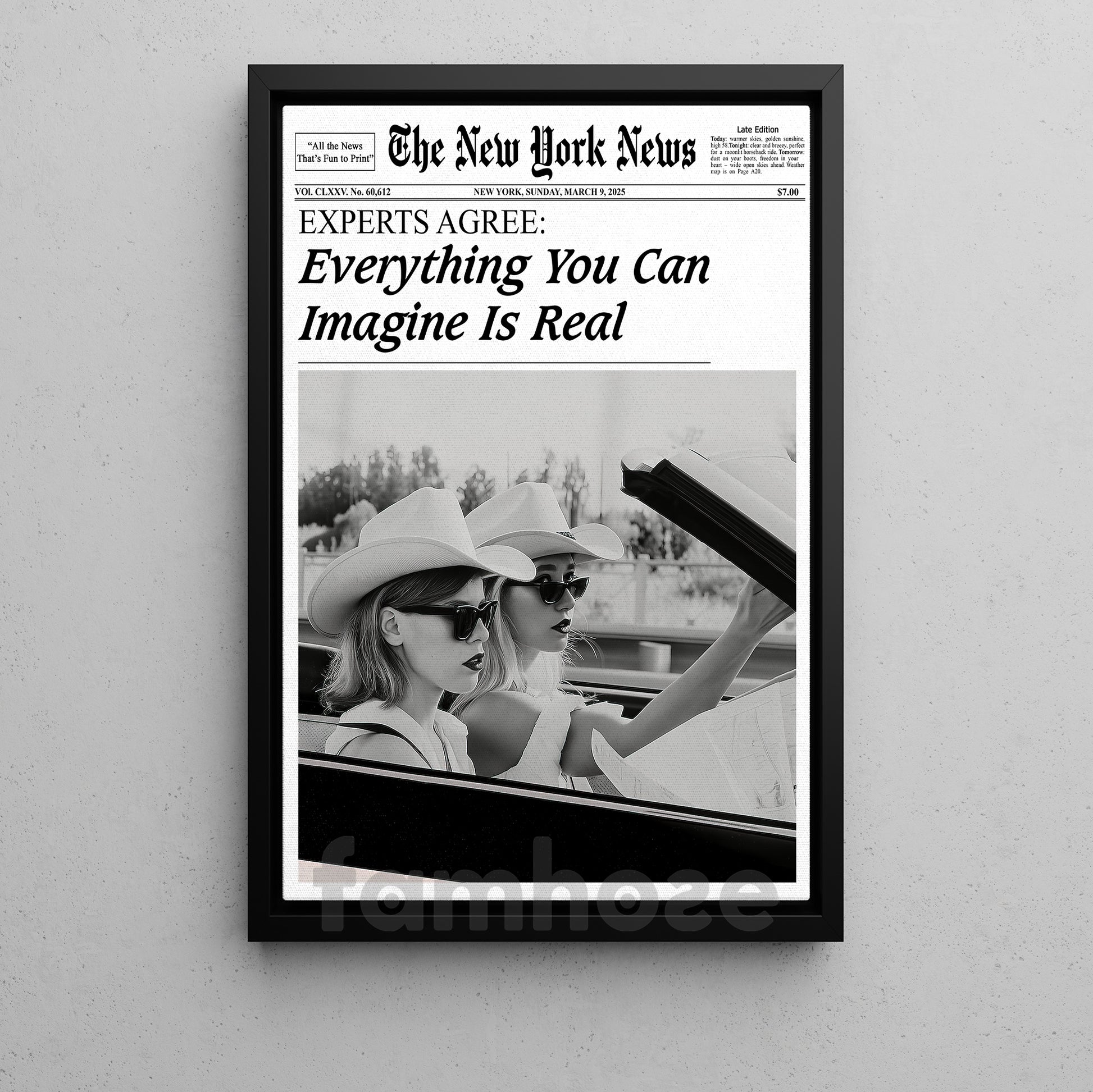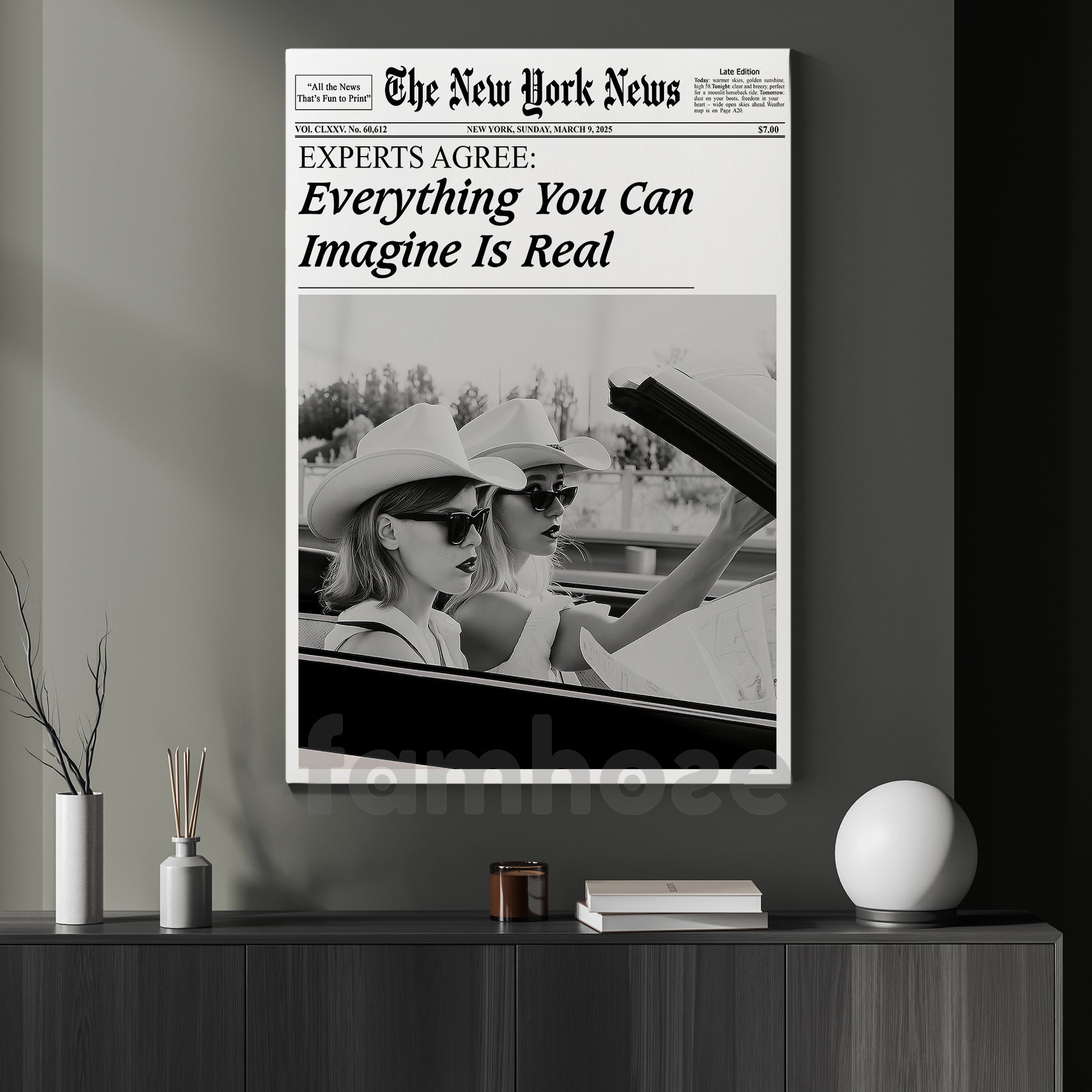 The New York News Cowgirl Canvas Painting, Everything You Can Imagine Is Real Wall Art Decor, Poster Gift For Cowgirl