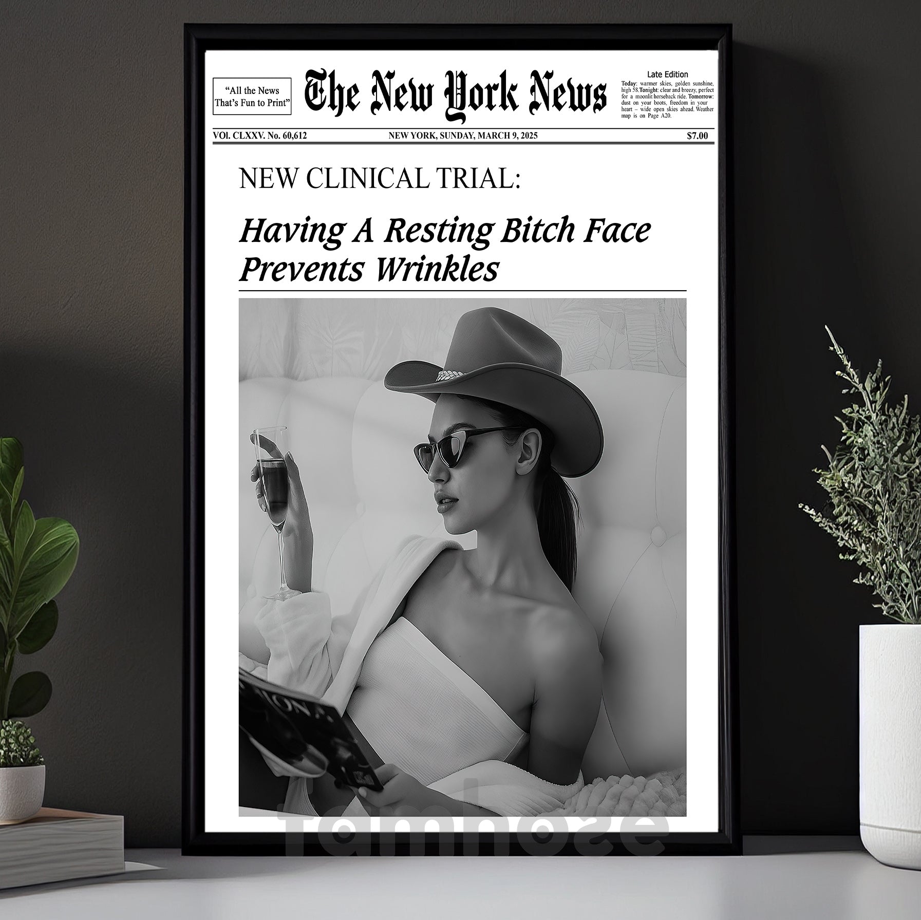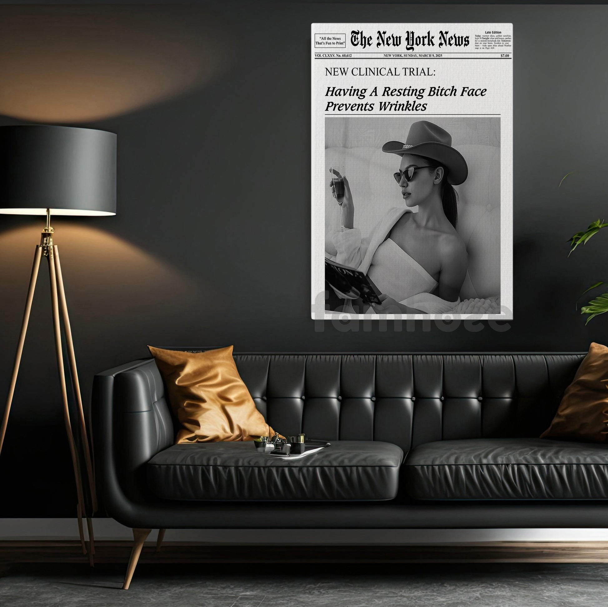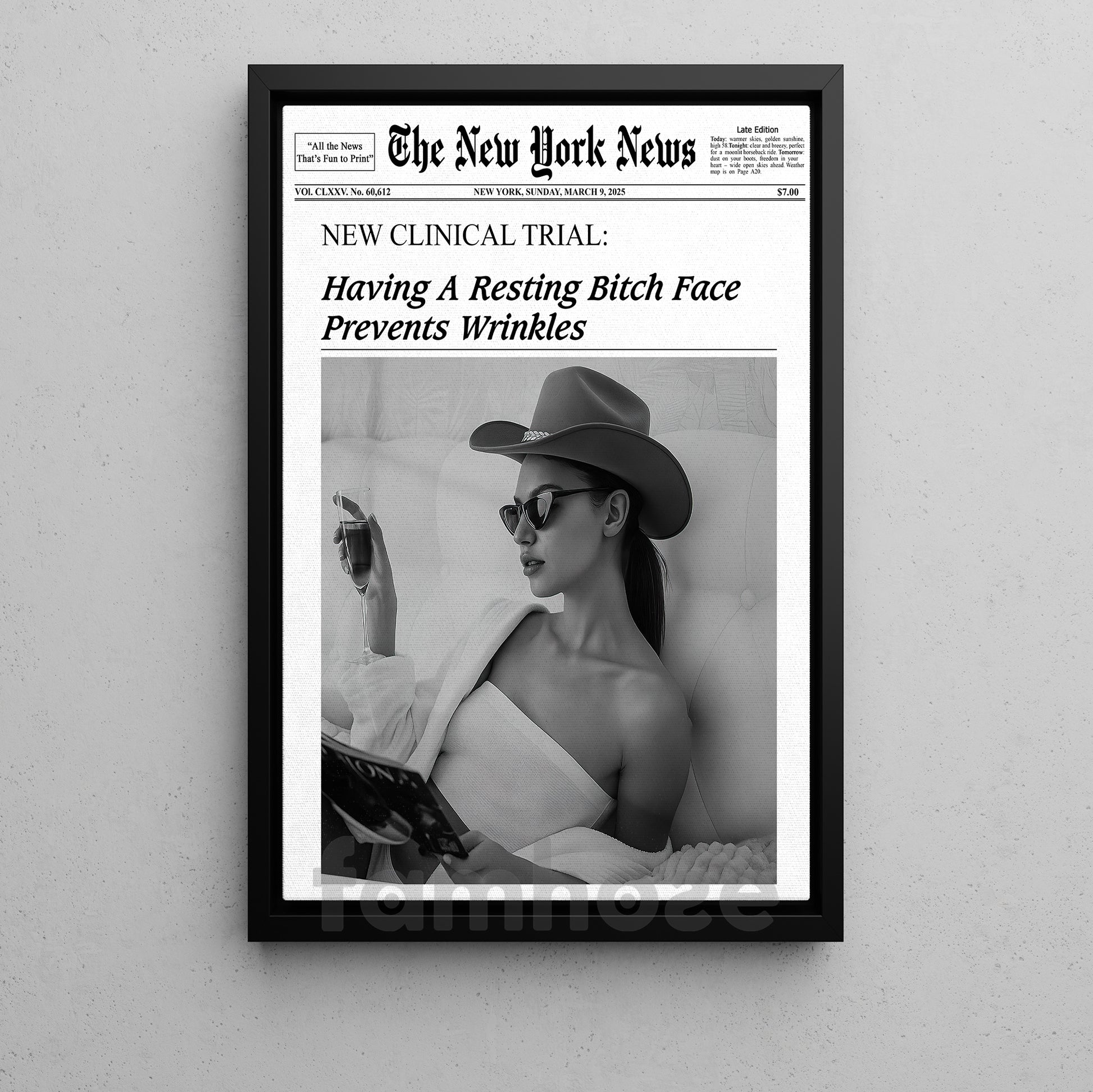 The New York News Cowgirl Canvas Painting, Having A Resting Face Prevents Wrinkles Wall Art Decor, Poster Gift For Cowgirl