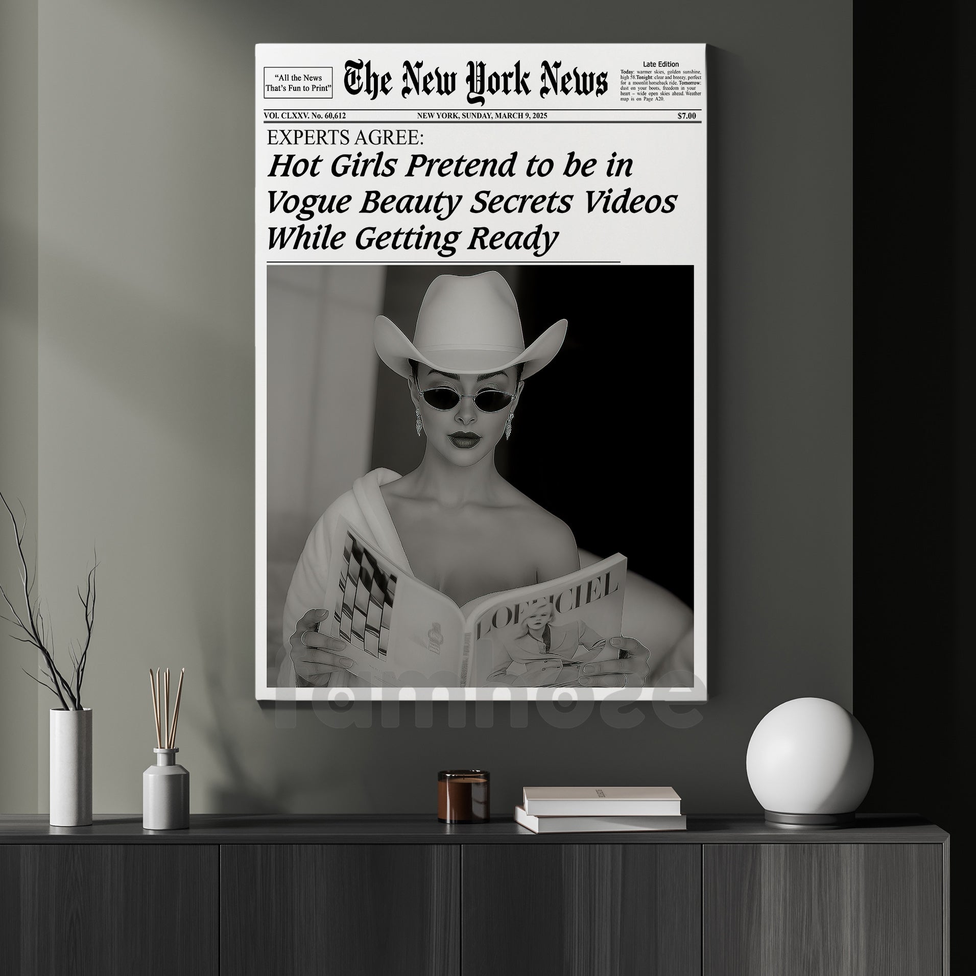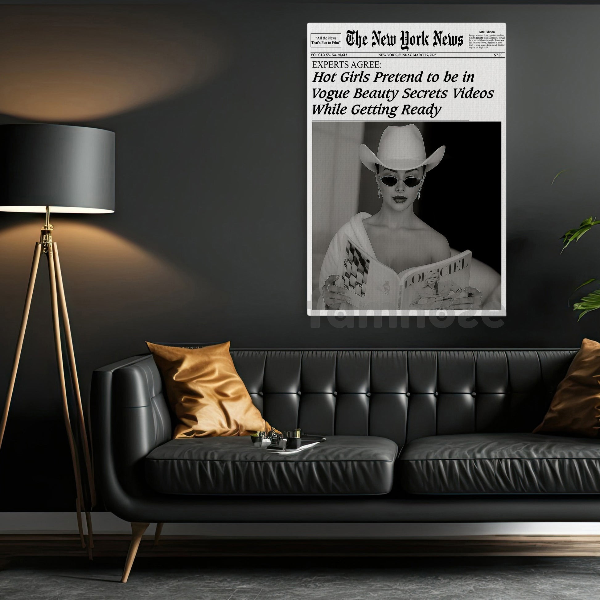 The New York News Cowgirl Canvas Painting, Hot Girls Pretend To Be In Vogue Beauty Wall Art Decor, Poster Gift For Cowgirl