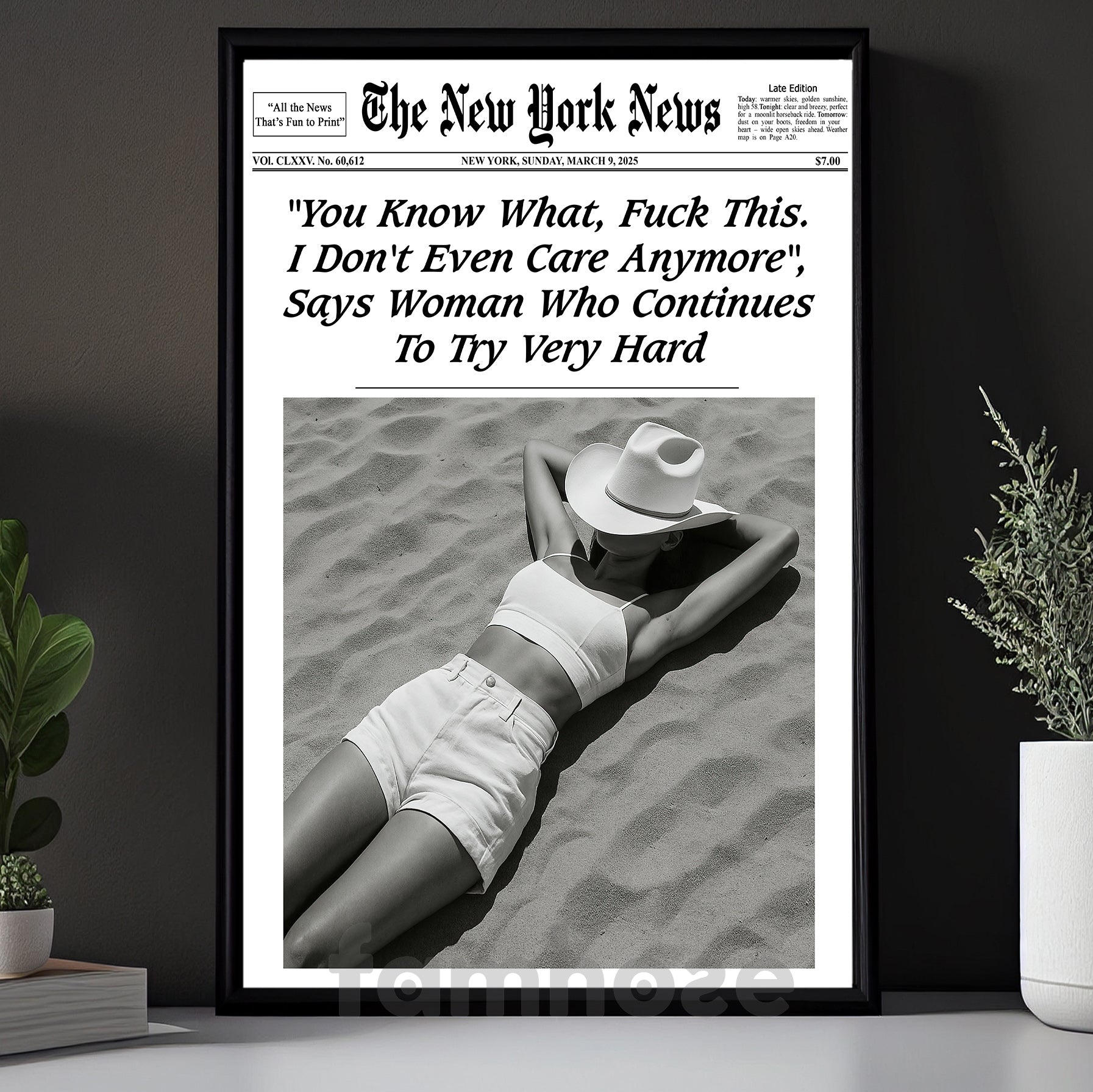 The New York News Cowgirl Canvas Painting, I Don't Even Care Anymore Wall Art Decor, Poster Gift For Cowgirl