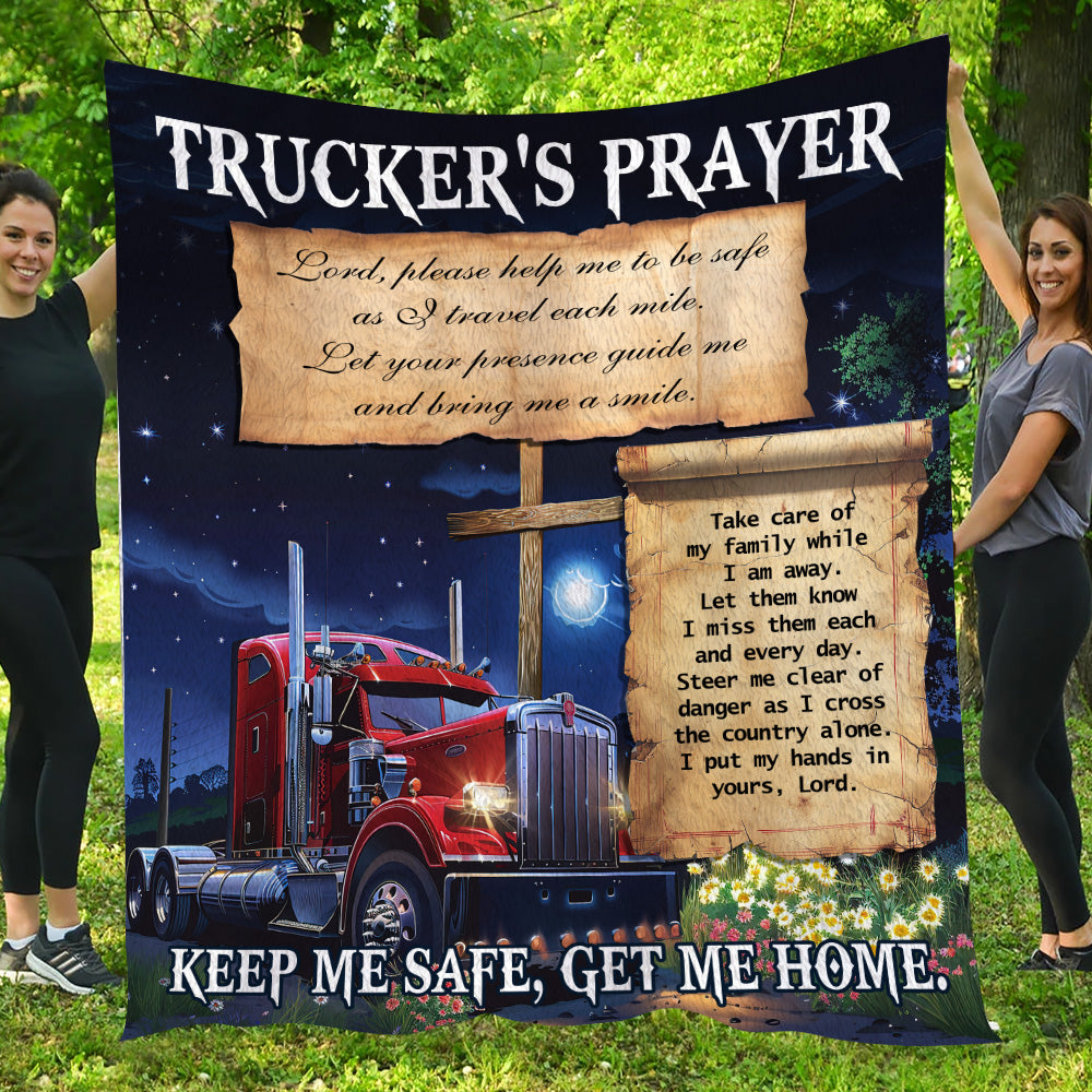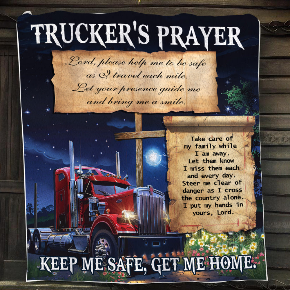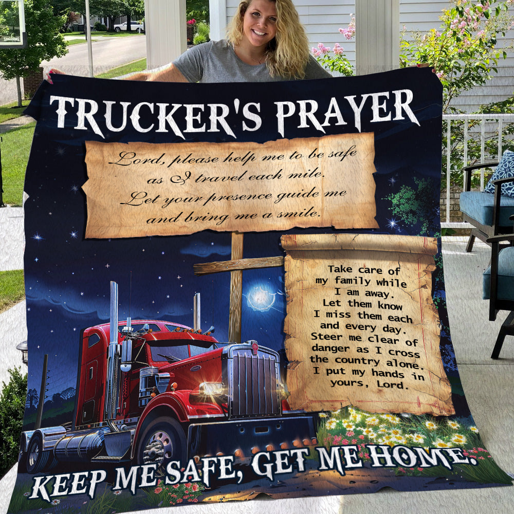 Trucker Blanket, Trucker's Prayer Keep me Safe Get Me Home, Trucker Fleece Blanket - Sherpa Blanket, Gift For Trucker Lovers