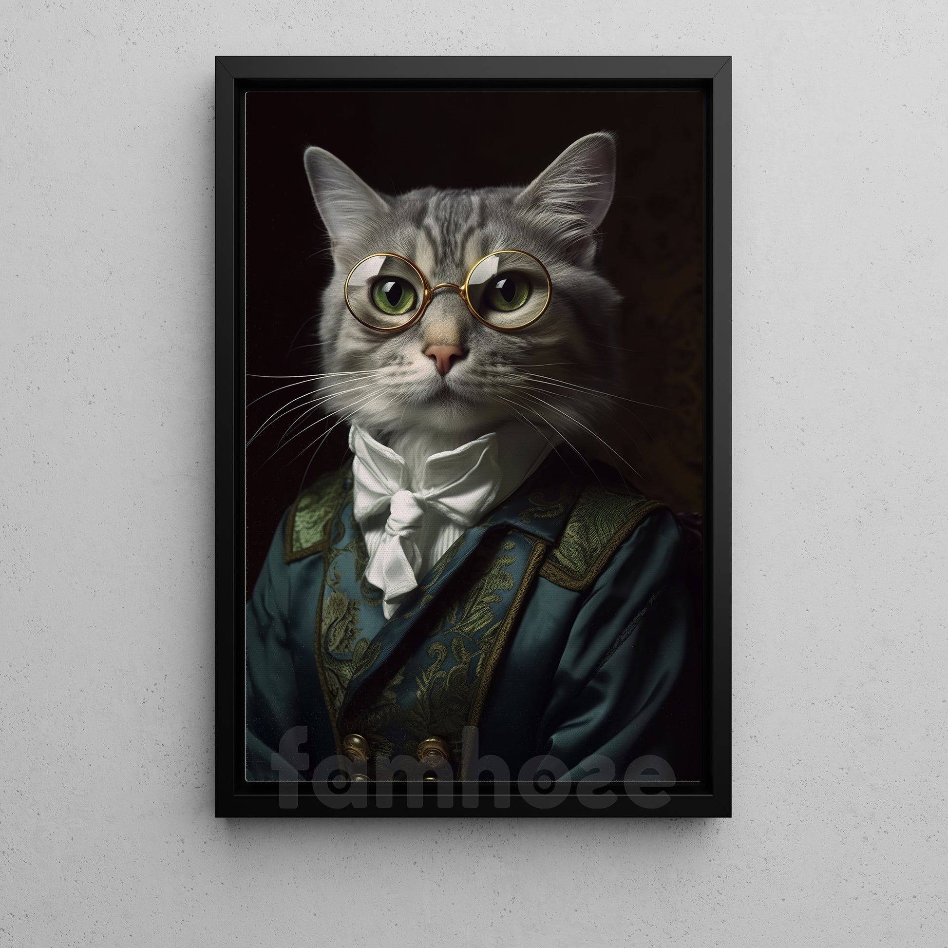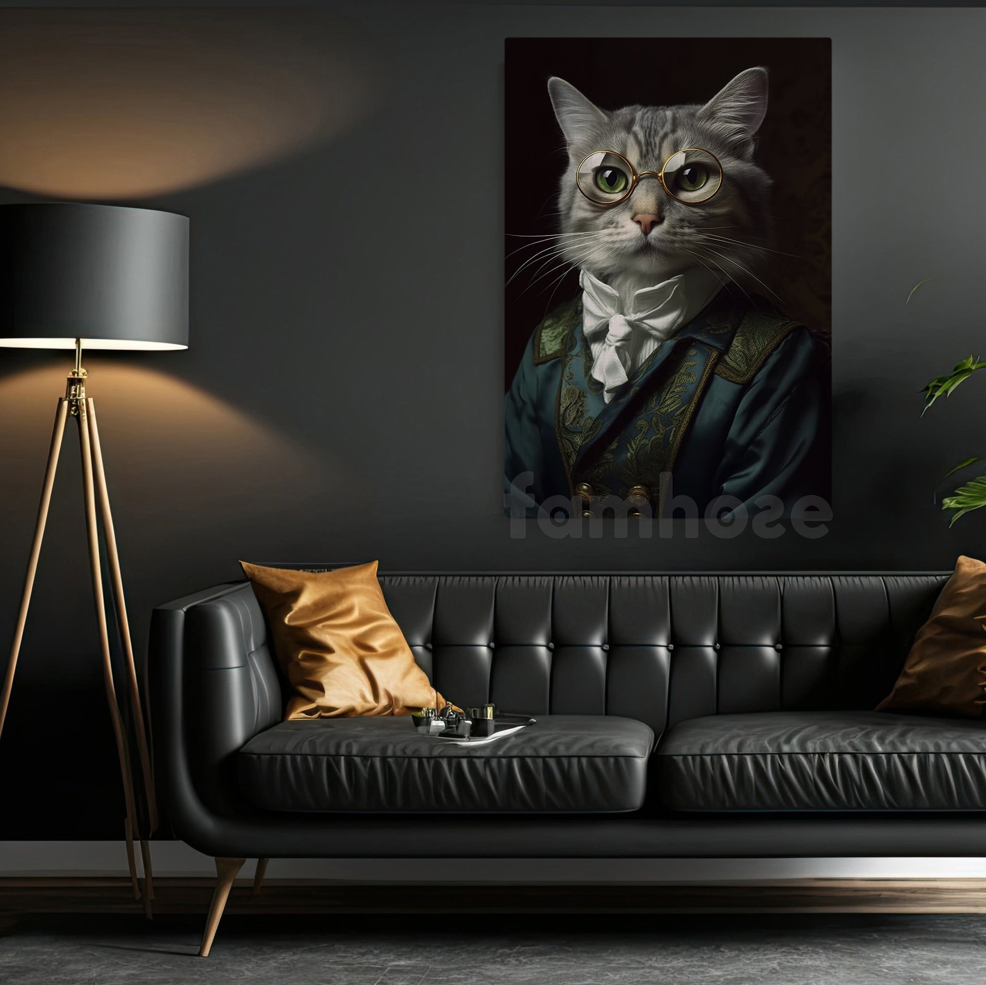 Victorian Cat Canvas Painting, Noble Cat Wall Art Decor, Poster Gift For Cat Lovers