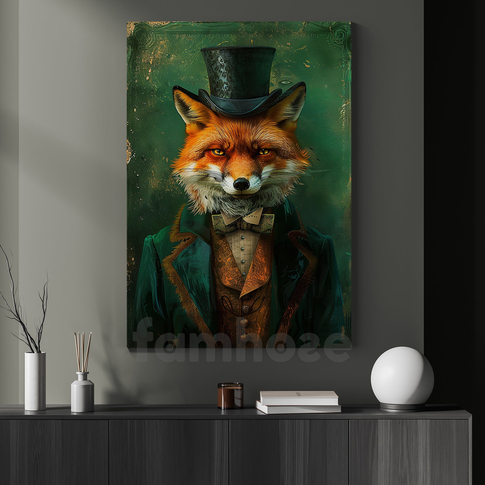 Victorian Fox Canvas Painting, The Dapper Fox Wall Art Decor, Poster Gift For Fox Lovers
