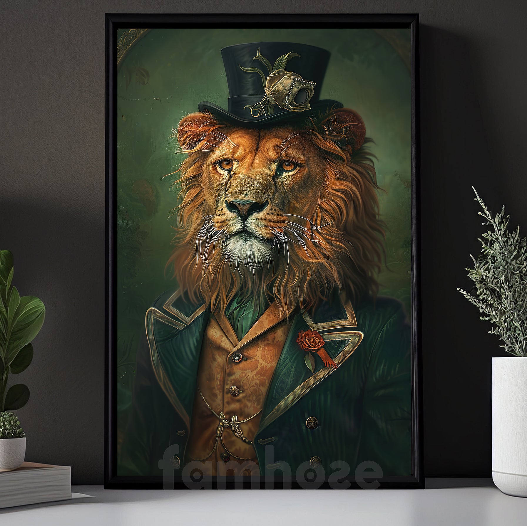 Victorian Lion Canvas Painting, The Aristocratic Lion Wall Art Decor, Poster Gift For Lion Lovers
