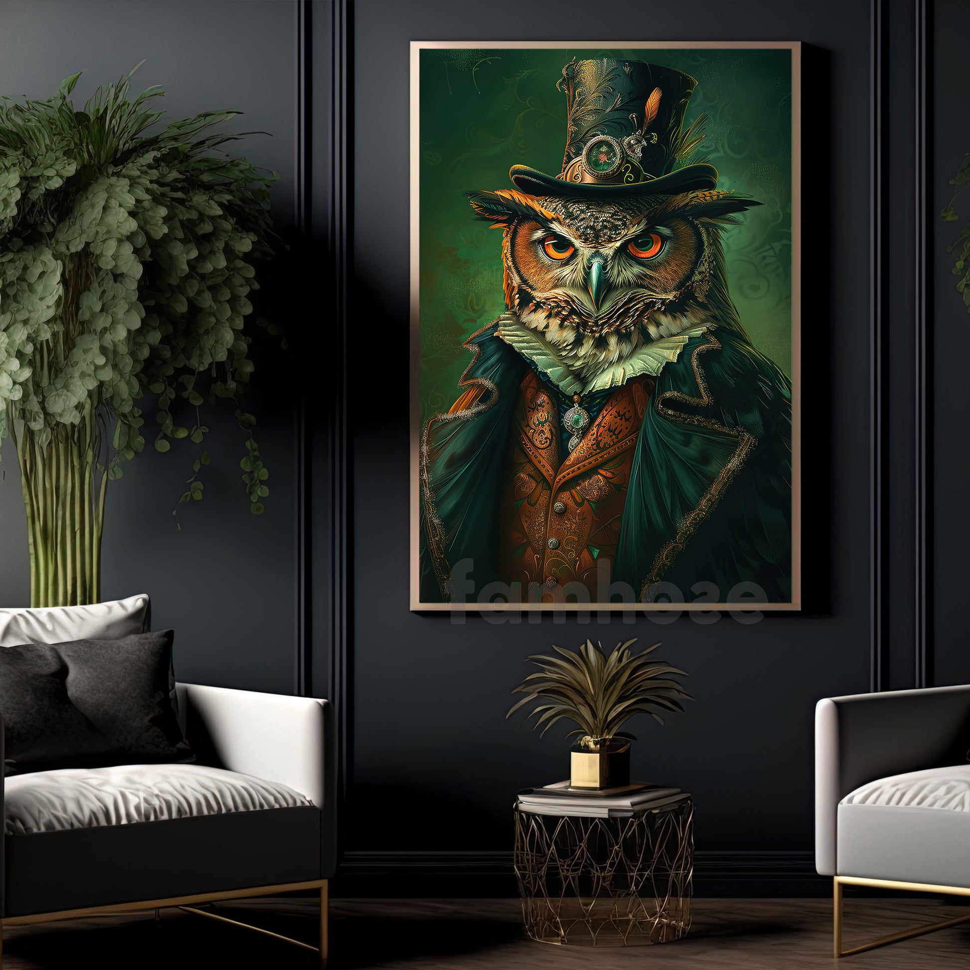 Victorian Owl Canvas Painting, Regal Owl Portrait Wall Art Decor, Poster Gift For Owl Lovers