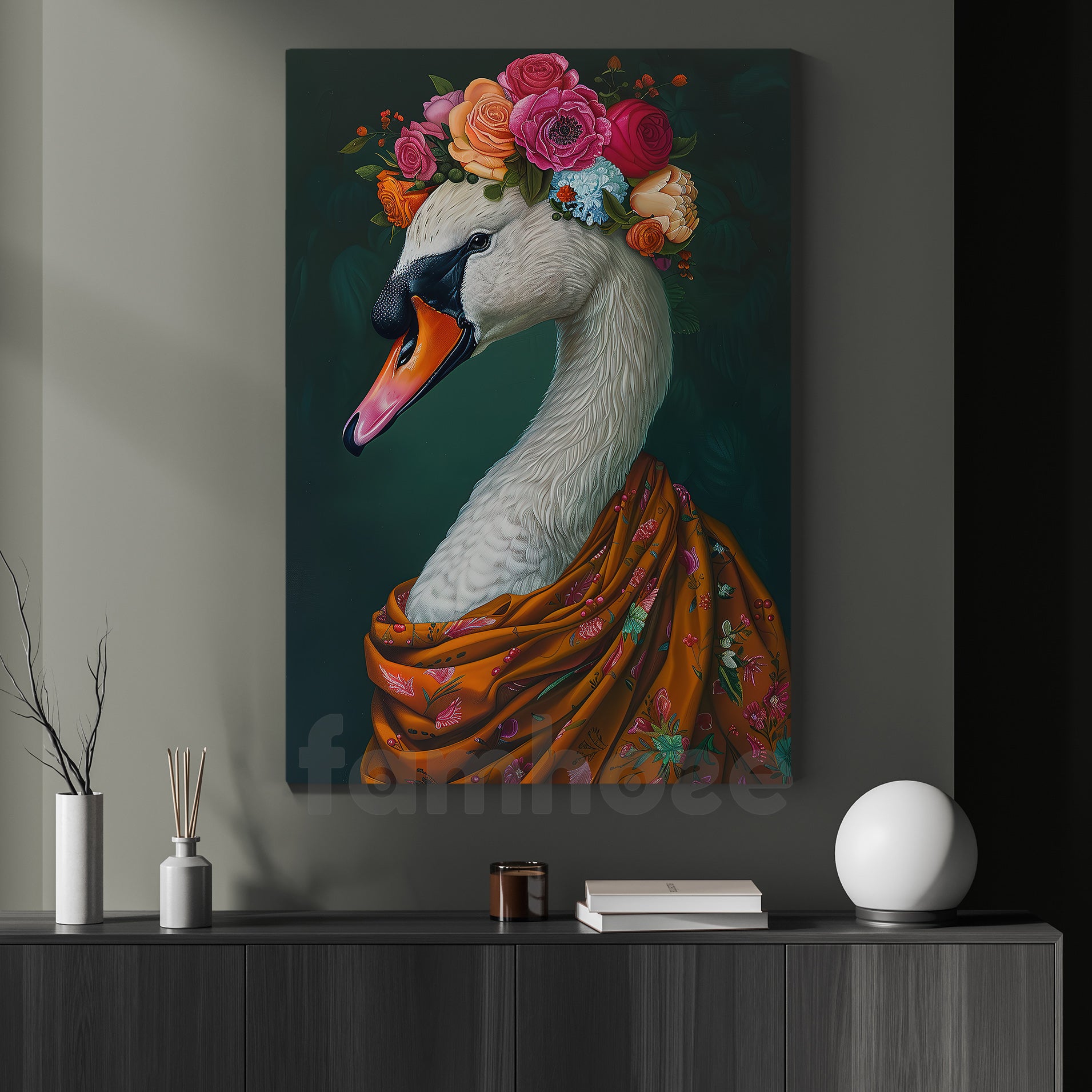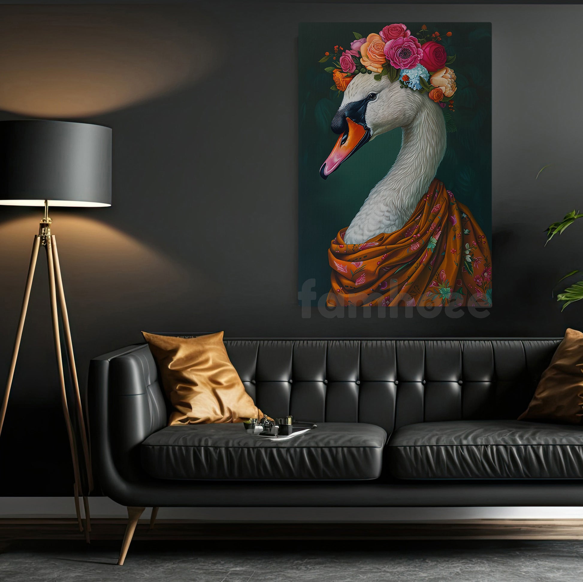 Victorian Swan Canvas Painting, The Regal Swan Wall Art Decor, Poster Gift For Swan Lovers