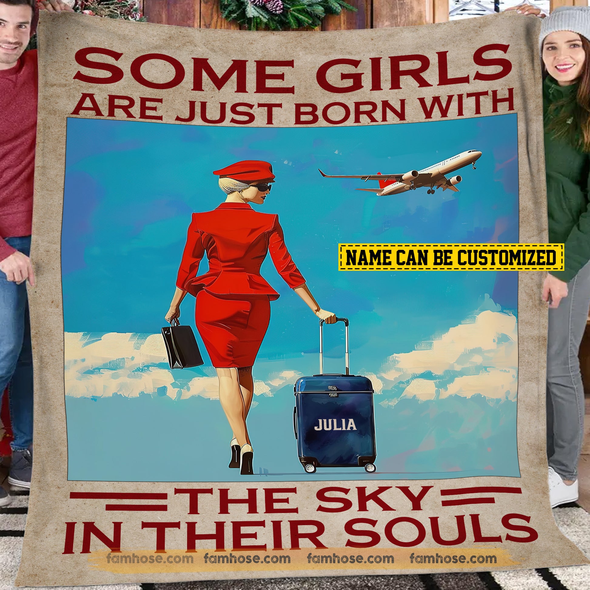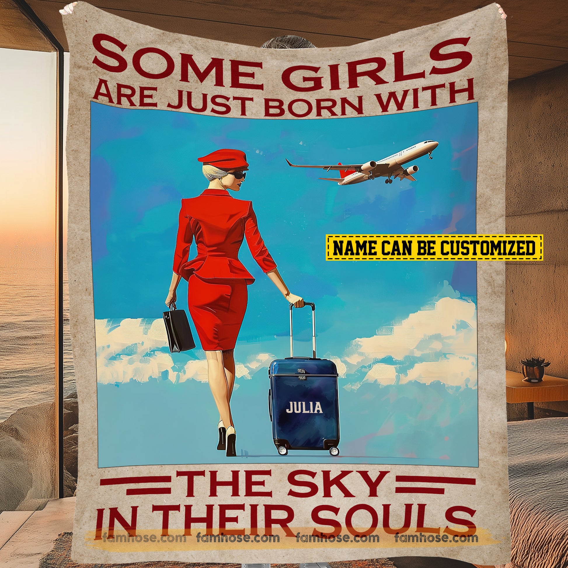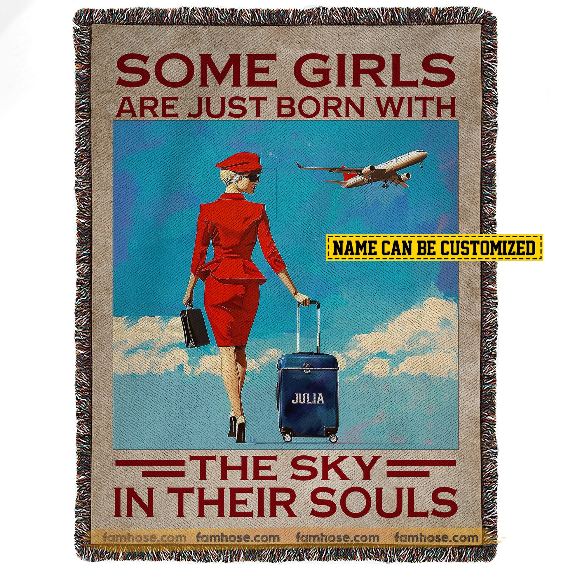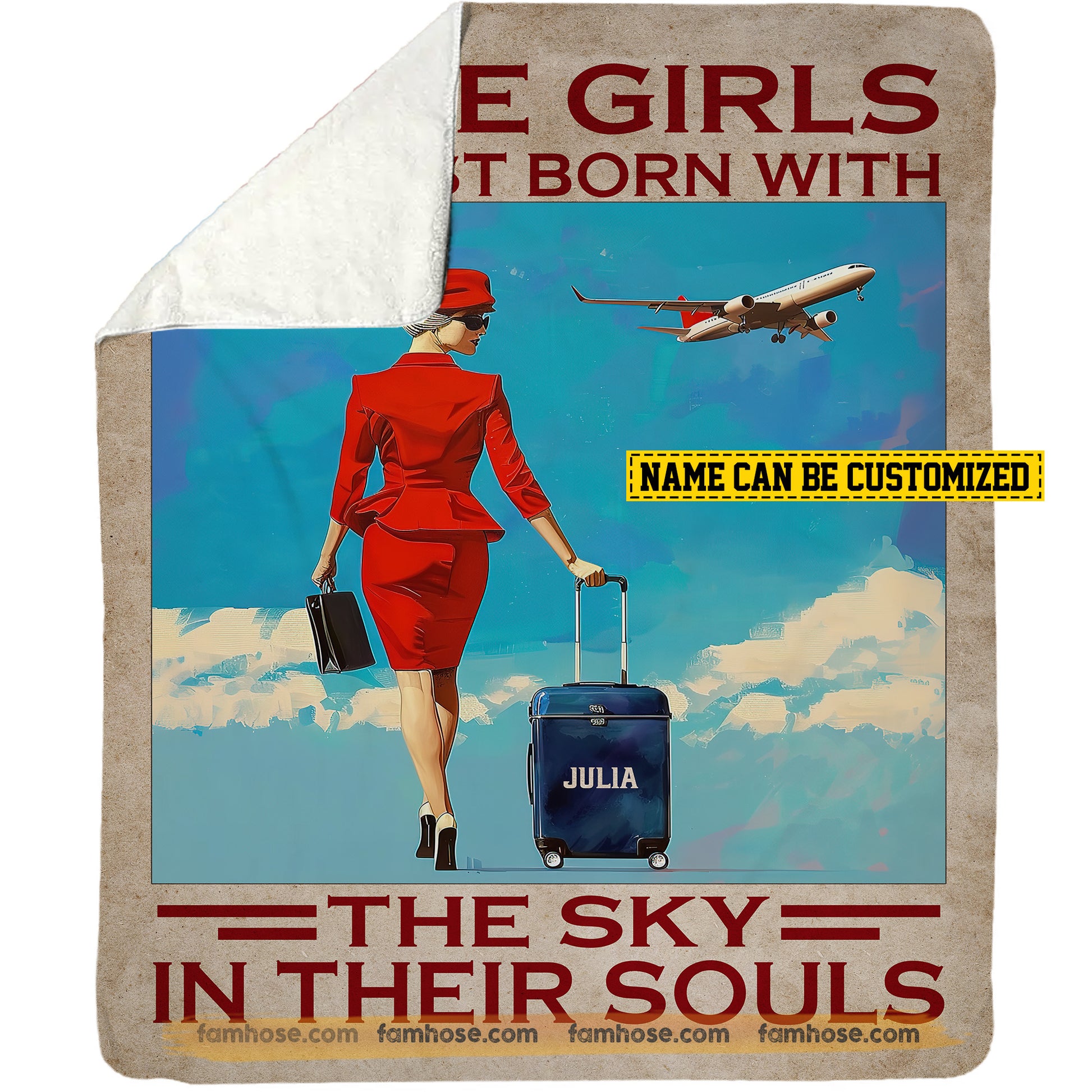 Vintage Personalized Flight Attendant Fleece Blanket, Some Girls Are Born To Fly Woven Blanket, Sherpa Blanket Gift For Air Hostess