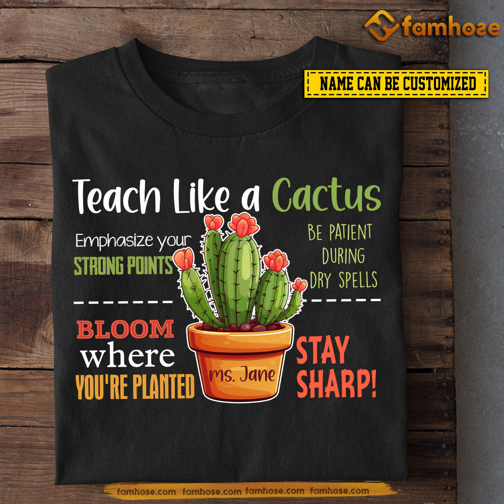 Vintage Personalized Teacher T-shirt, Teach Like A Cactus Tees Gift For Teacher Lovers
