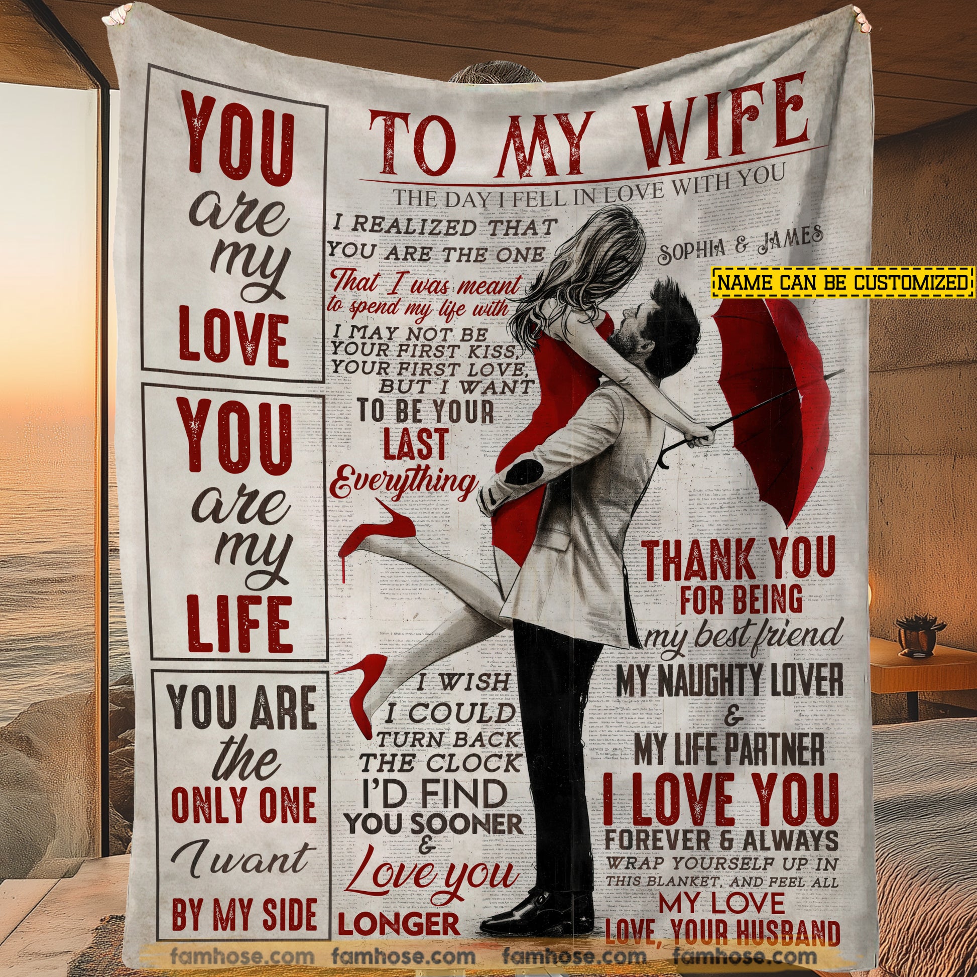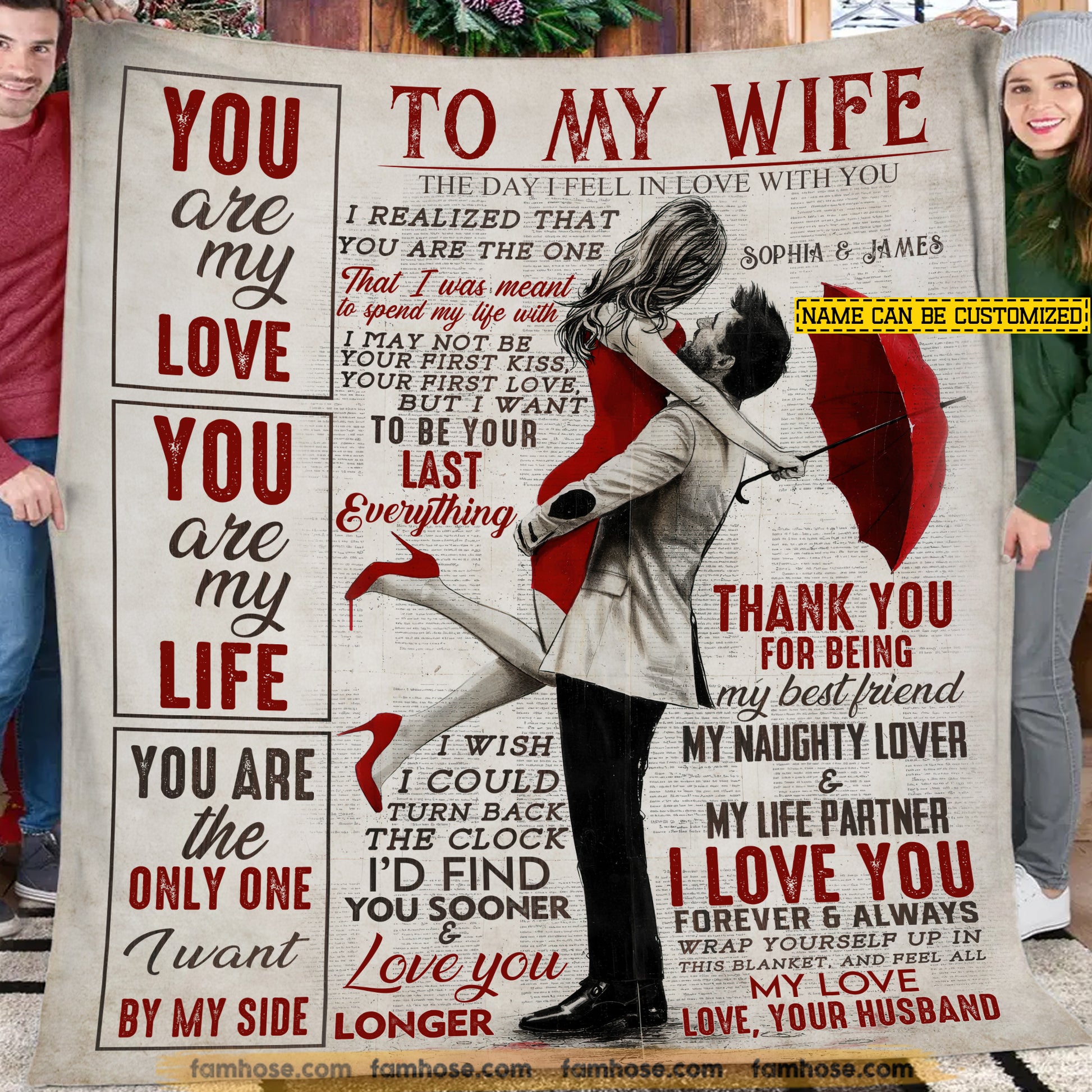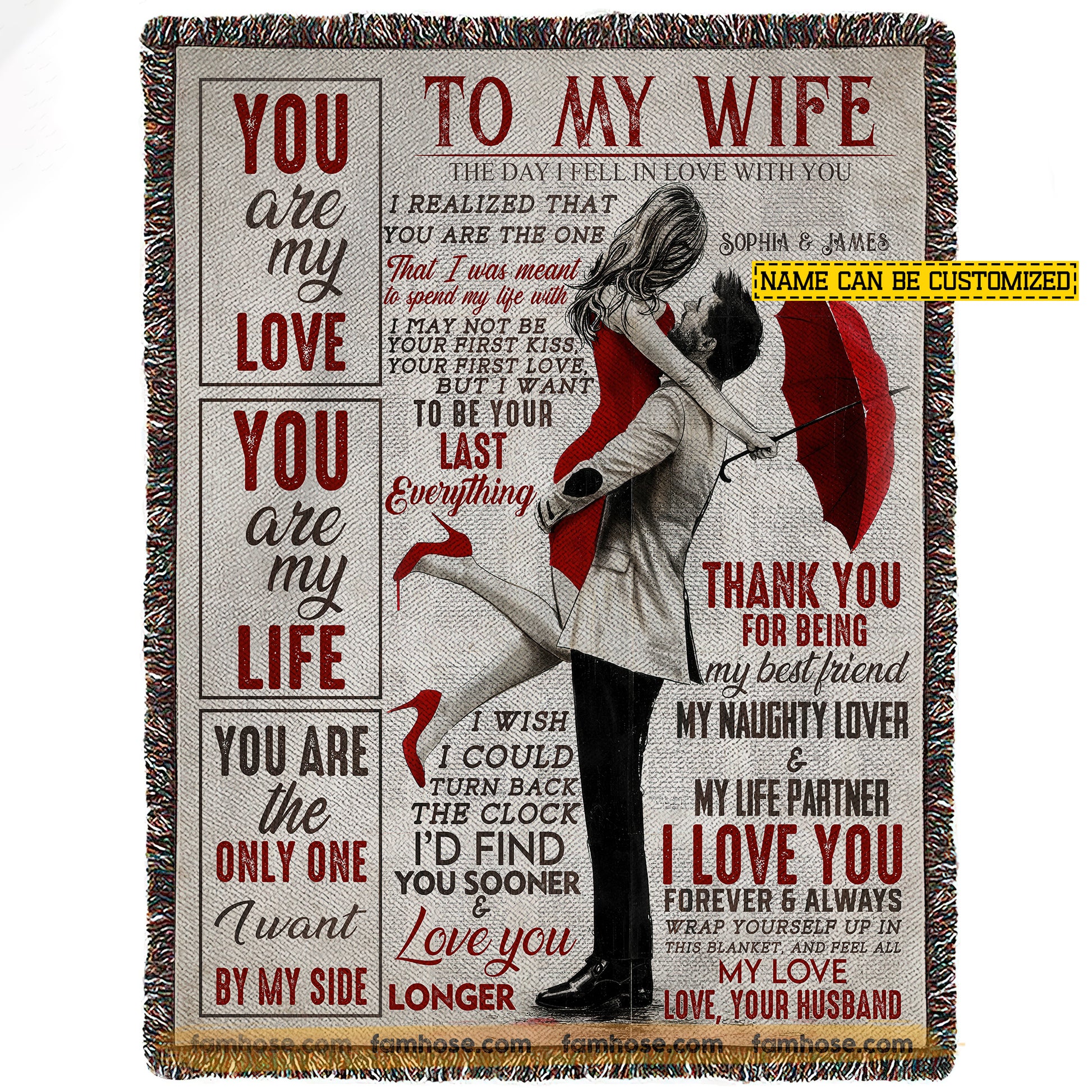 Vintage Personalized To My Wife Fleece Blanket, You Are My Love Woven Blanket, Cozy Sherpa Blanket Gift For Wife