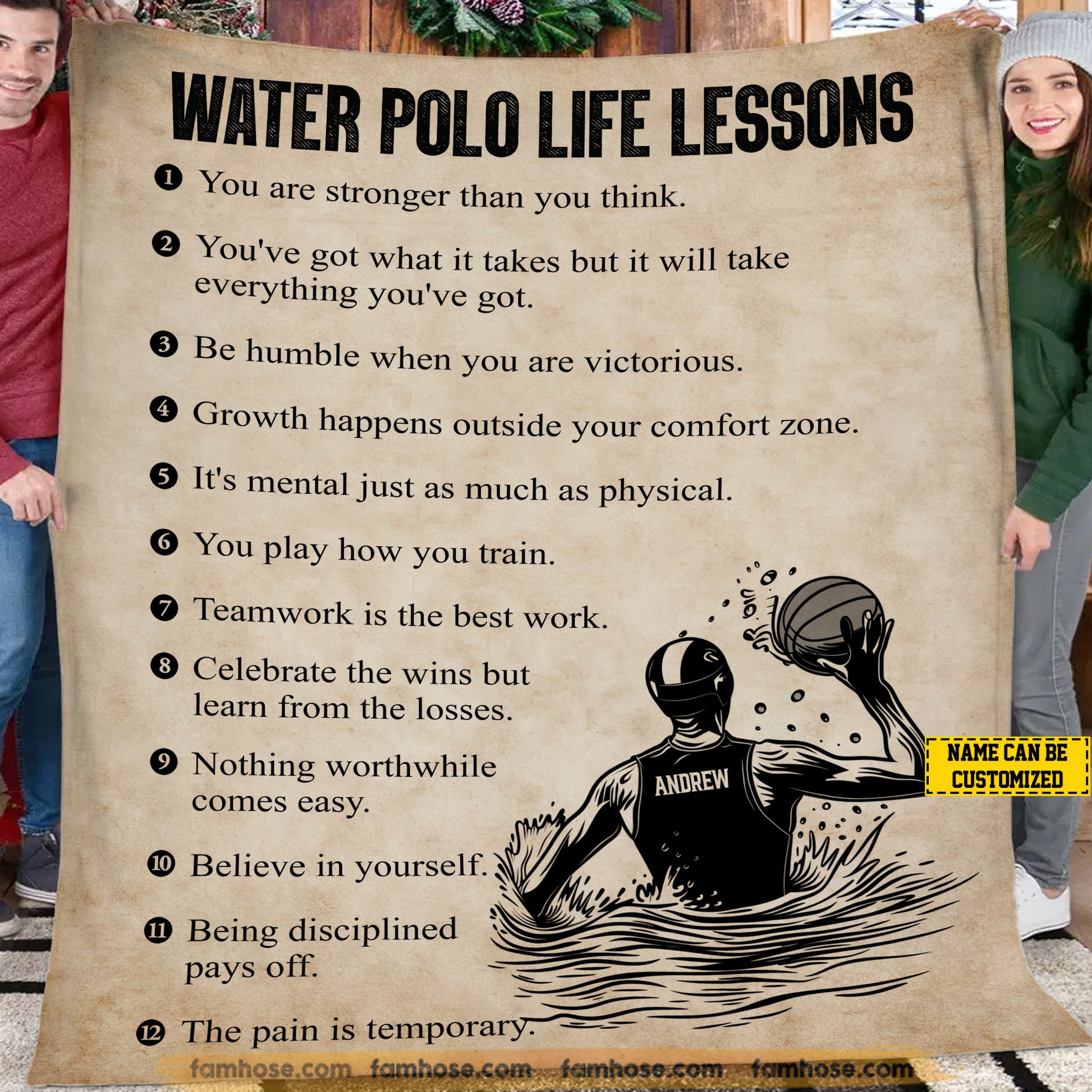 Vintage Personalized Water Polo Fleece Blanket, Water Polo Life Lessons Sport Woven Blanket - Sherpa Blanket Gift For Water Polo Lovers