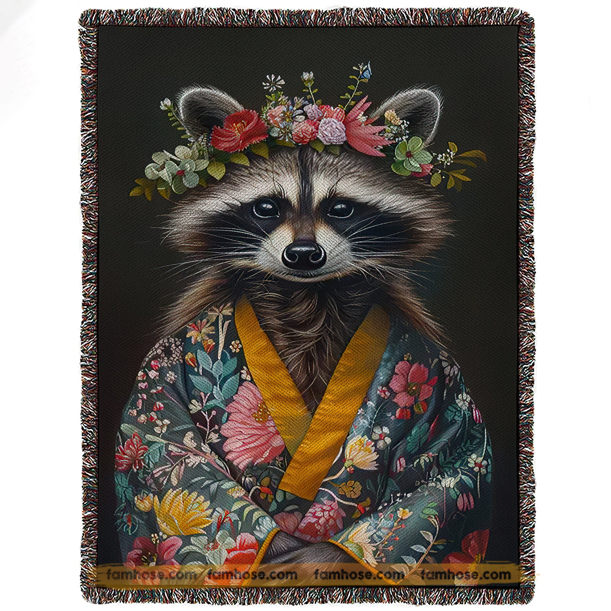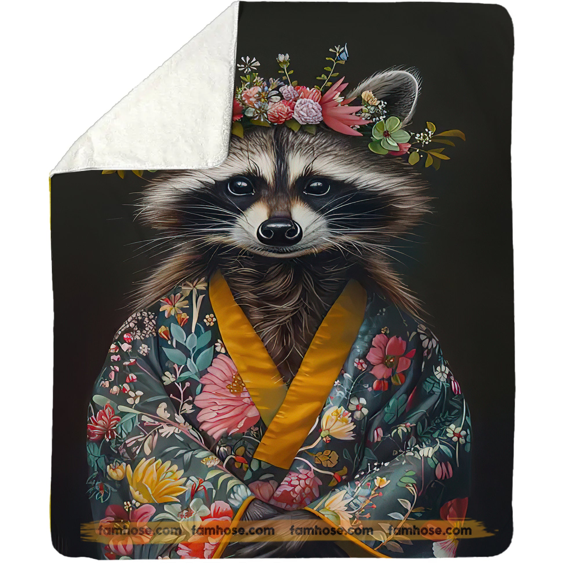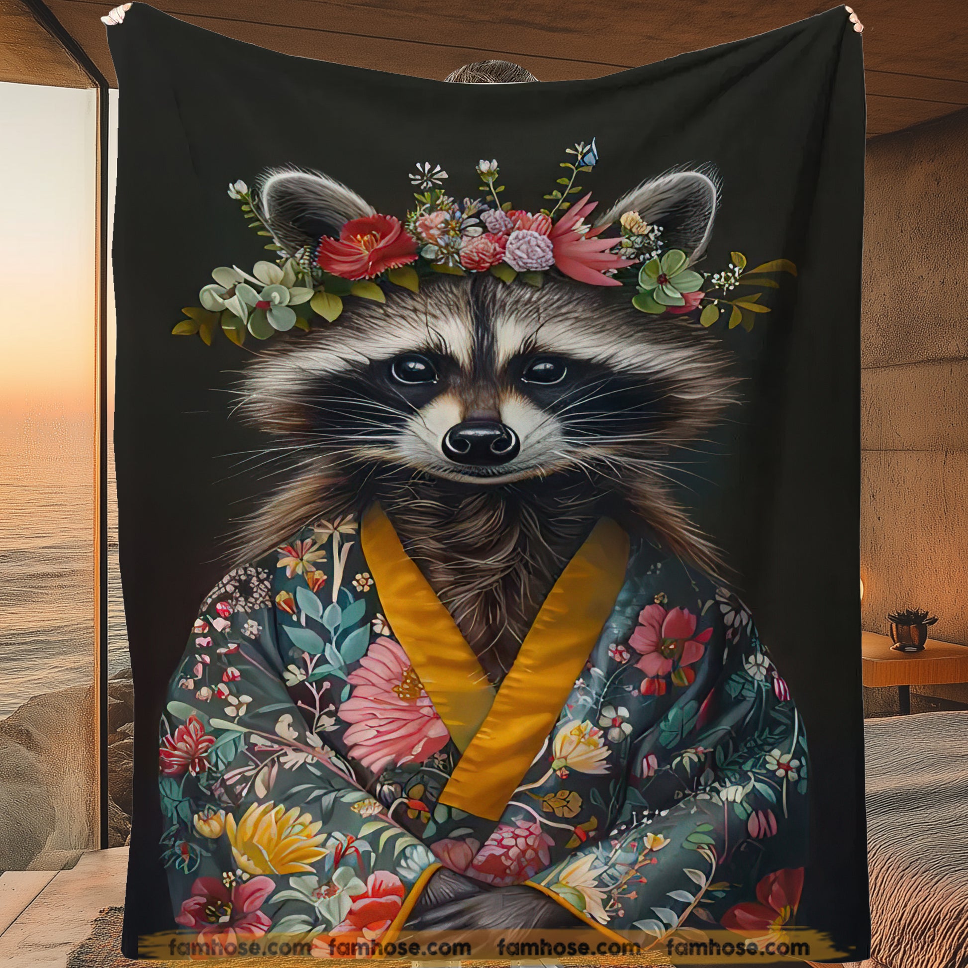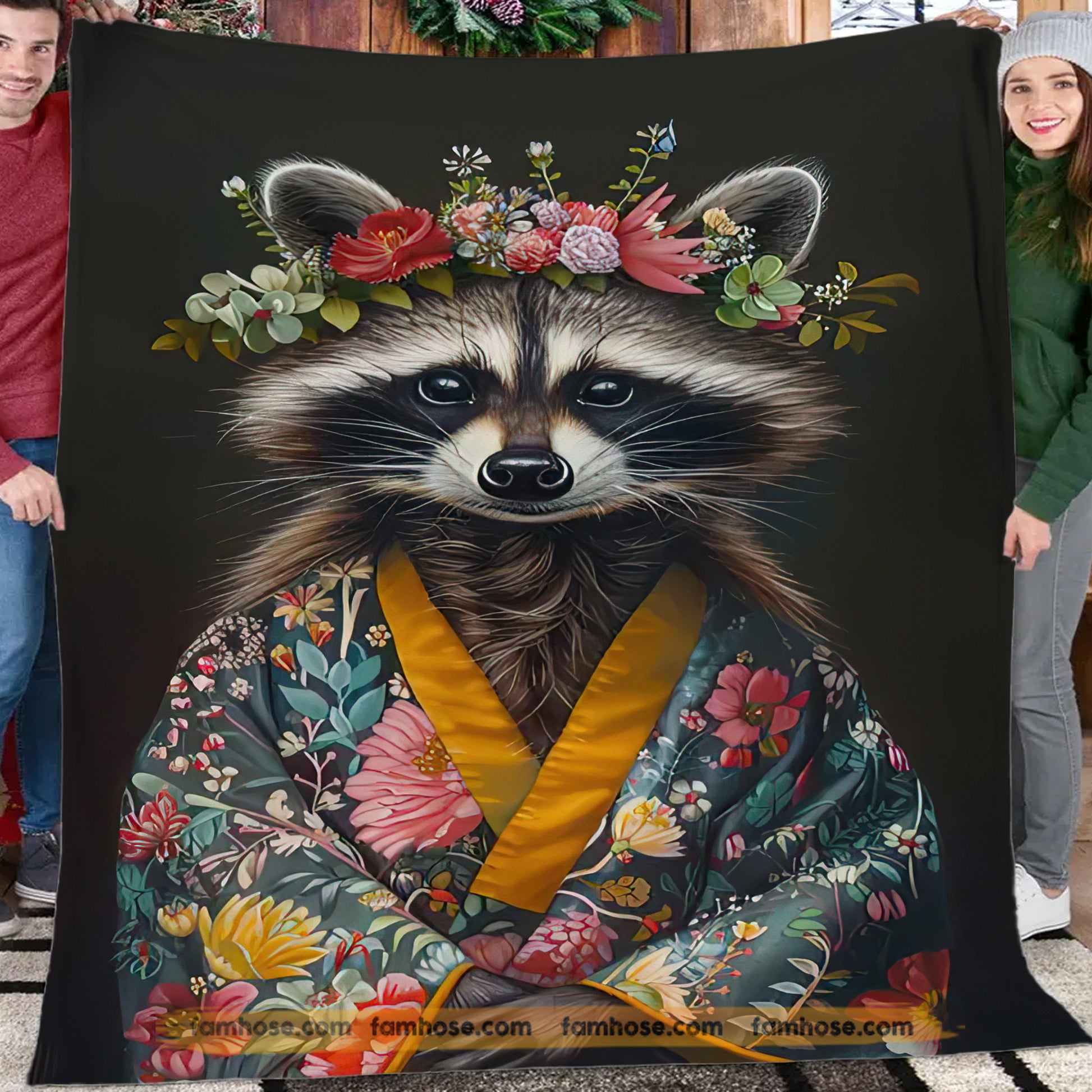 Vintage Raccoon Flower Fleece Blanket, The Relax Raccoon Woven Blanket - Sherpa Blanket Gift For Raccoon Lovers