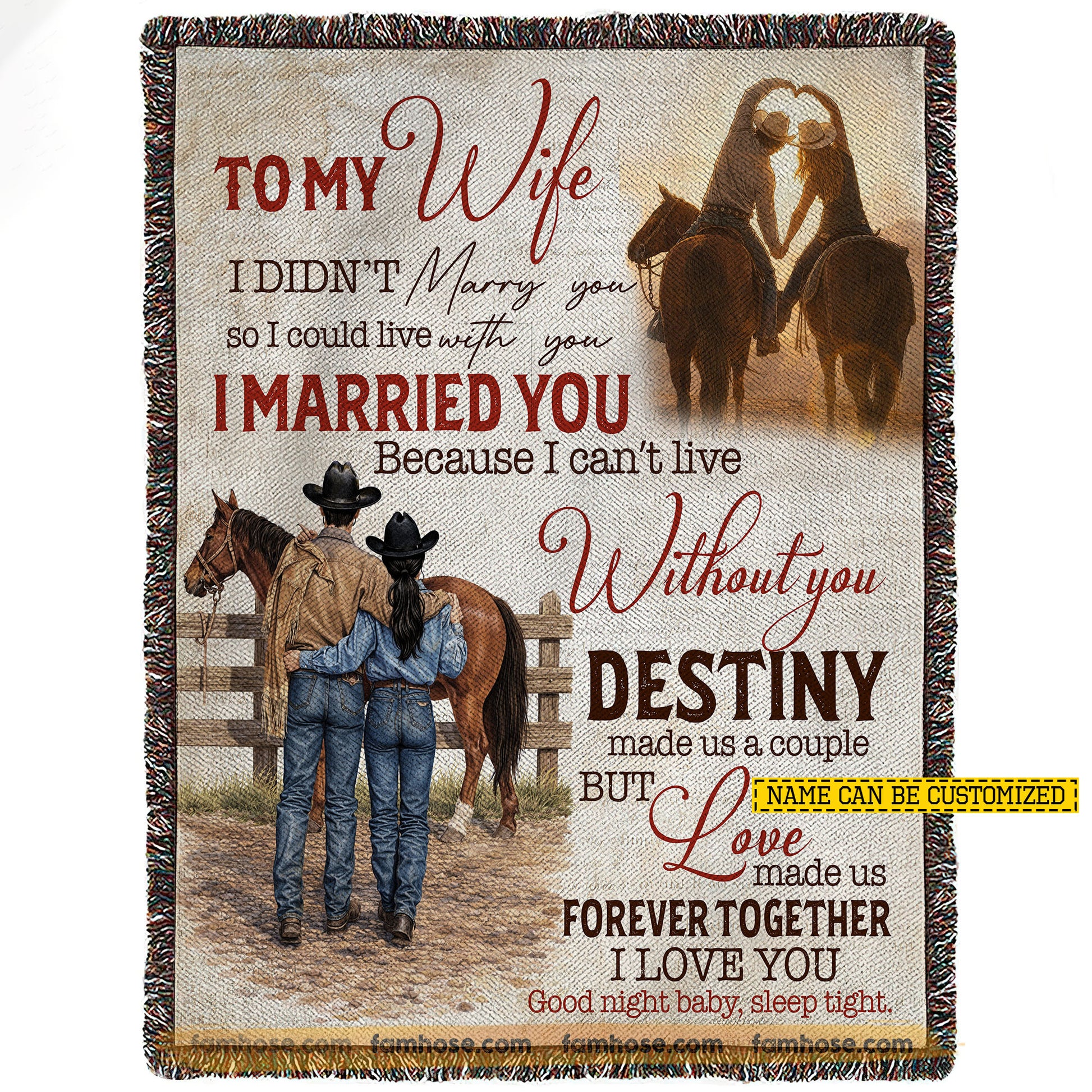 Vintage To My Cowgirl Wife Fleece Blanket, Love Made Us Forever Together Woven Blanket, Cozy Sherpa Blanket Valentine Gift For Cowgirl Wife